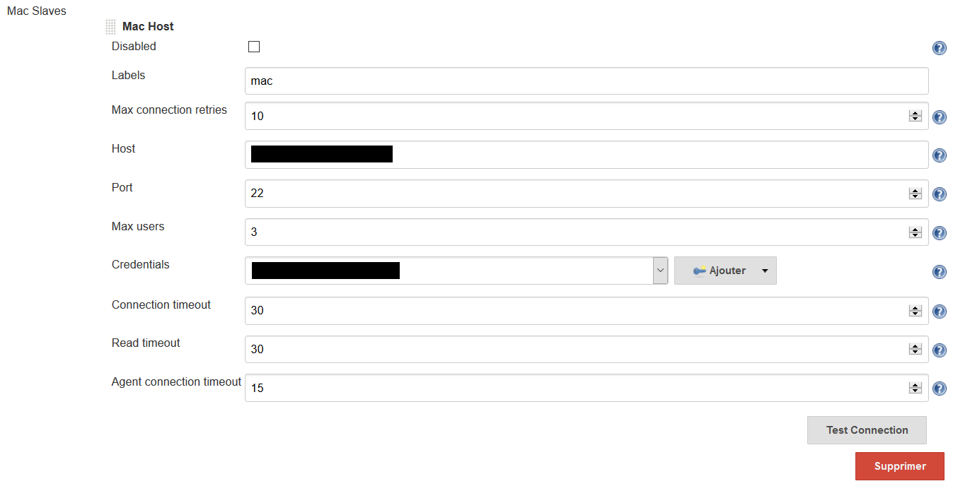 The supported credentials for now is User and Password. Put an account of your mac with sudo NOPASSWORD configured (see Configure a Jenkins User).