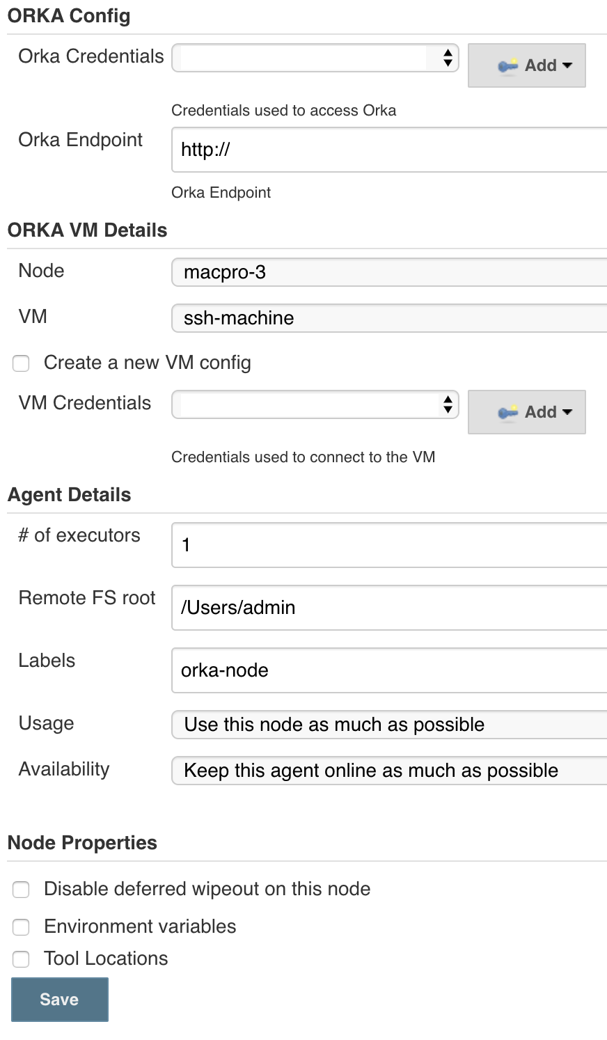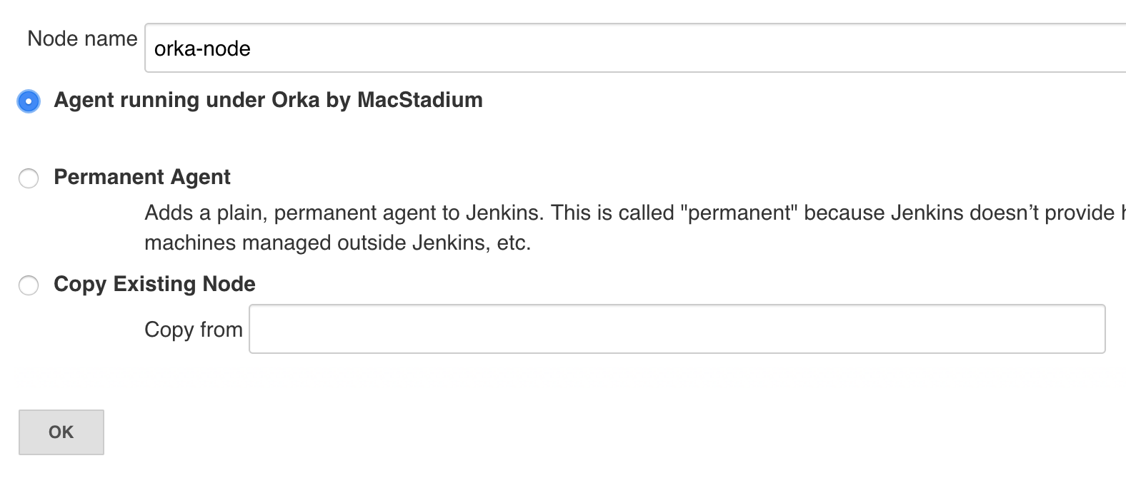 The plugin allows you to create permanent agents, running on Orka by MacStadium. The plugin first deploys a new VM in an Orka environment and then uses SSH to connect to it.