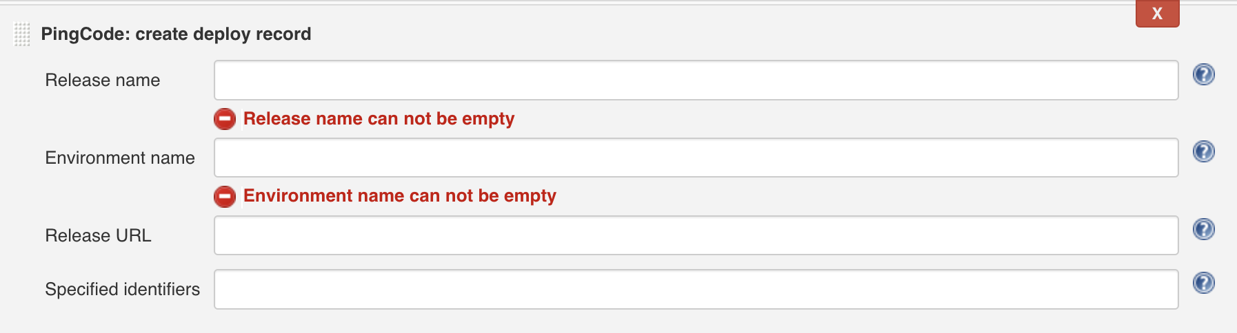 Release name- Required. The name of the release. You can use environment variables for dynamic variable substitution in the name. For example:release-${BUILD_ID}, which means that the release name is dynamically generated using theBUILD_ID. All environment variables injected by the plugin can be used. If the environment variable does not exist, the source character will be retained.Environment name- Required. The name of environment that the code will be deployed to. If the environment does not exist, the plugin will automatically create.Release URL- Optional. A URL that can view the detail deployment results. If it is empty, no related links are displayed in PingCode.Specified identifiers- Optional. list of work item identifiers. for examplePLM-100,PLM-101. If it is empty then the command will get the work item identifiers in the SCM.